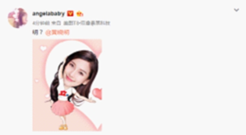 果不其然,4月7日黄教主上线,回复baby“报告angela媳妇儿我立白了”+一颗完整的爱心插图,同时艾特立白洗衣液官微,霸道总裁范儿十足,实实在在秀了把恩爱,简直是赤裸裸地宣布代言“立白”的节奏。