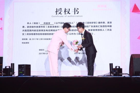 著名歌曲创作者许嘉文先生授权歌曲《坚持梦想》作为美胸汇集团的企业之歌