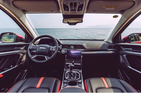 坐入车内,哈弗H4的内饰设计前卫,以沉稳的黑搭配耀眼的红,让年轻运动气质喷薄而出。哈弗H4采用的是科技感十足的悬浮式中控台,中控屏与副仪表盘相连接,按键设计在屏幕下方,不仅美观操作也便捷。内饰运用了大量的软质材料,犹如豪华车型般的视觉效果和触感,让哈弗H4由内而外的吸引了人心。