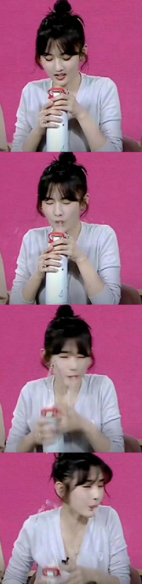 当晚来为宋祖儿直播助阵的嘉宾还有祖儿的明星好友孙坚,抖音粉丝量超1135w的小李朝ye,粉丝量超1431w的衣哥和直播主持人安琪,大家七嘴八舌边聊天边展示产品,气氛很热闹。祖儿的“乌龙被汽水喷脸”事件的经过是这样的,直播时大家吃了很多产品,祖儿拿起自己的保温杯想喝水,谁知道刚打开保温杯的瓶盖,里面的汽水就喷涌而出,喷了祖儿一脸!坐在她旁边的孙坚和小李朝ye还有安琪都吓坏了,全场工作人员也都屏住呼吸很紧张,结果祖儿完全没有架子,还打趣的说:“它喷我鼻孔里了!希望刚刚那一幕没有被截屏!”随后自己用纸巾随便擦了一下脸就又继续直播了。可见宋祖儿平时私下脾气非常随和,完全没有偶像包袱,换做别人可能要当场到旁边补个妆再继续。