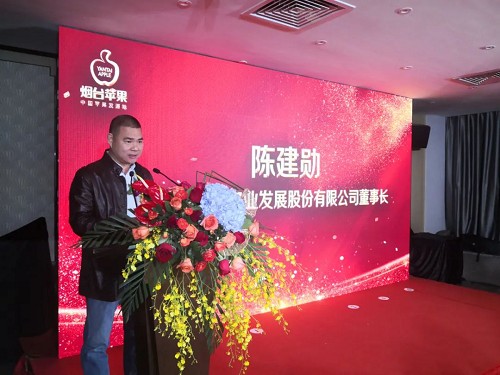 广州江南果菜批发市场经营管理有限公司的副总经理赖勇金,广州市青怡农业科技股份有限公司董事长 陈建勋分别上台发言,他们肯定了烟台苹果的品质,也对烟台果农提出期望:加强管理,多出优质苹果,能够卖到更多的钱。